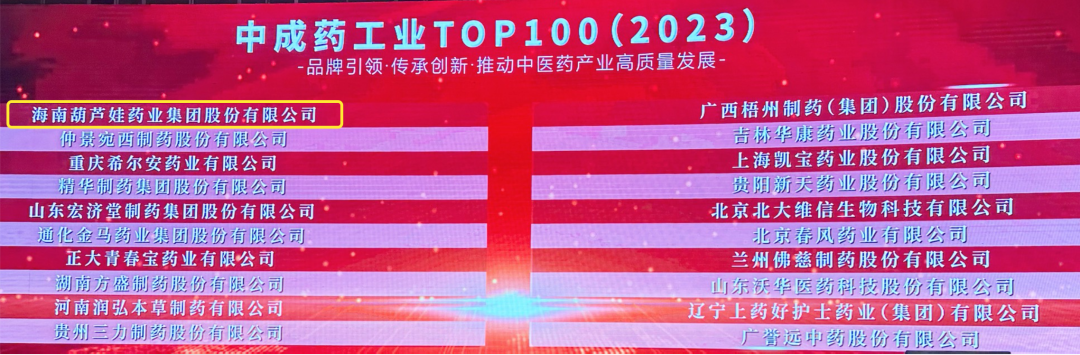 利来w66药业集团荣登2023中成药工业TOP100榜单